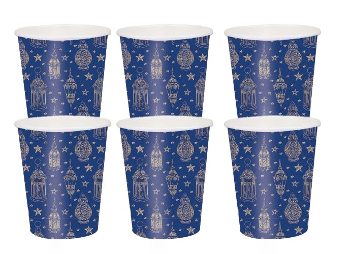Generic - Disposable Paper Cups, Blue with Lantern and Star Pattern, Ramadan Theme, 6 Count