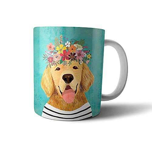 Other - Dog with Flowers Printed Ceramic Mug - Multi Color