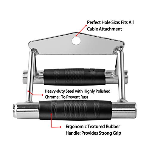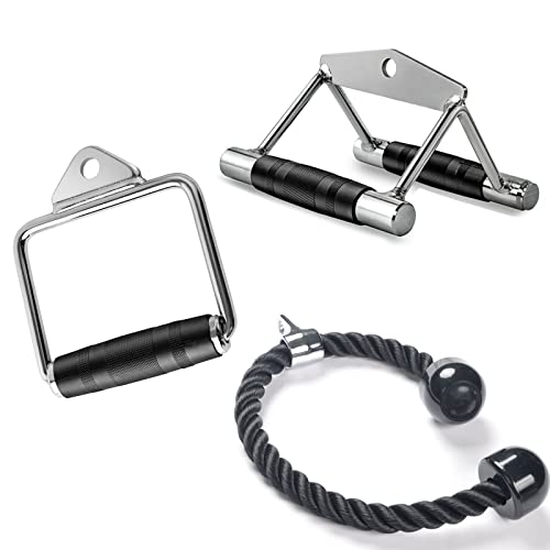 DOHOO - LAT Pulldown Attachments Cable Machine Accessories for Weight Lifting, V-Shaped Handle + Triceps Rope + Single D Handle