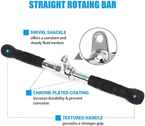 - Straight Bar: 18-inch length and 1-inch diameter, 360 degree swivel with chrome polished finish and rubber handle with textured handles to prevent from corrosion, rust