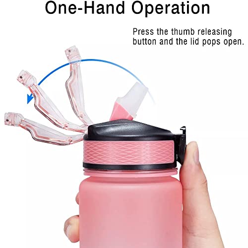 - Portability: Easy to Carry and Use: The flip-top opening mechanism, leakproof lid, pop-up silicone straw, and easy-to-grip handle make this bottle convenient to use and carry around