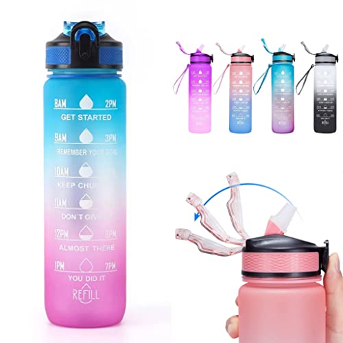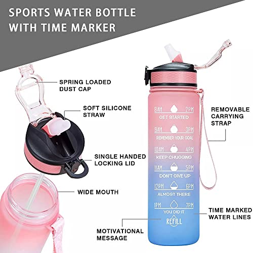Generic - Doyoung 32oz Motivational Water Bottle with Time Markers, Leak Proof, BPA Free, 1L Capacity, Plastic, Perfect for Workouts, Running, Hiking, Cycling, Yoga