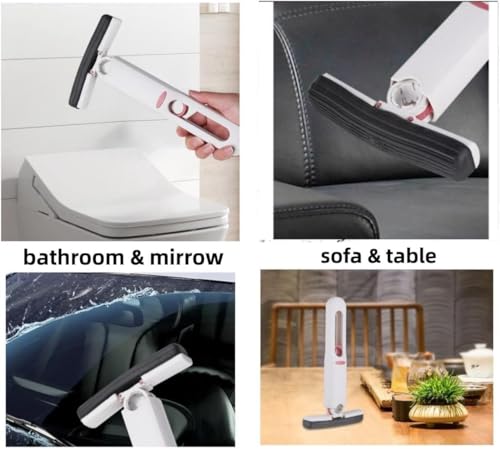 Generic - ممسحة صغيرة محمولة ذاتية الضغط من دي بي، ممسحة قصيرة قوية الامتصاص بدون غسل للاستخدام الرطب والجاف بيد واحدة، نظام تنظيف للحمام والمطابخ والمكتب وأواني المائدة وسطح المكتب والزجاج والسيارة