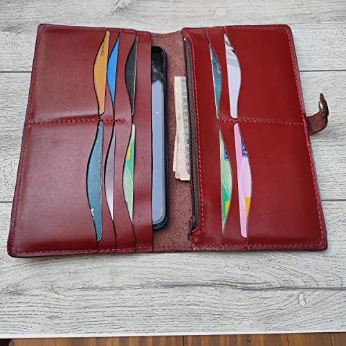 dr.key - Dr.key Leather Long Purse for Money, Cards and Phone (1002, Wine)