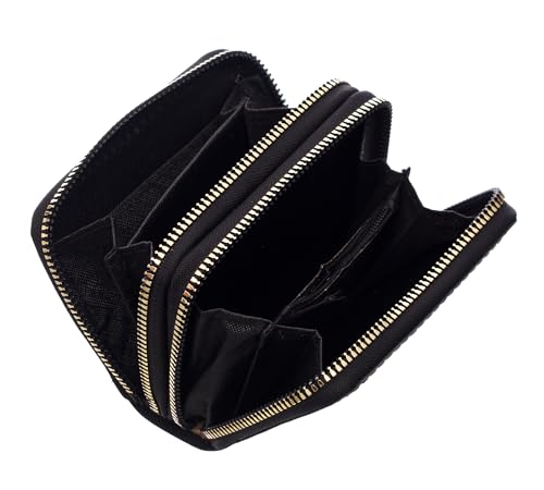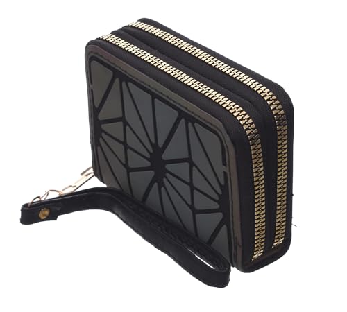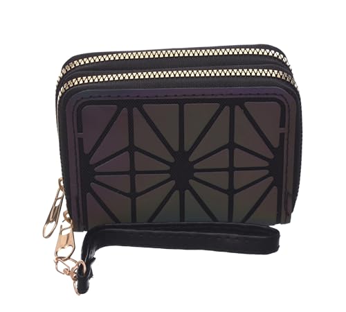 Dragon - Dragon Leather Small Two Zipper Bifold Wallet With 3D Mirror Geometric Shape Design And Business Card Holders For Women - Multi Color