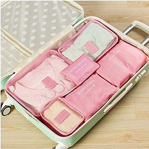 Dragon - Dragon Packing Cubes (1 Sets - 6 Pieces) Luggage Organizers Laundry Bags Travel Accessory Toiletries Clothing Medicine Shoes Passport Document for Suitcases,Carry-on,Back Packs-Organize Bags Pink