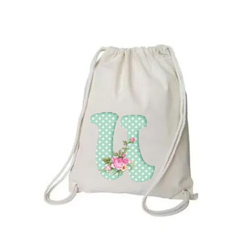 Generic - Drawstring Bag with Floral Design, Letter (U),