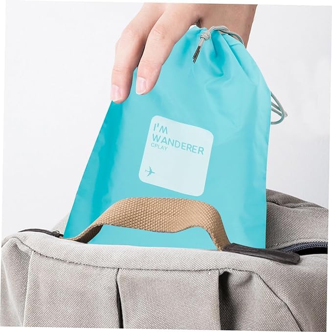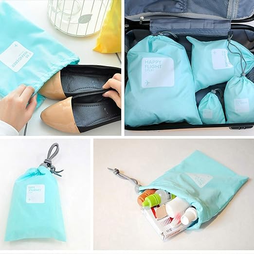 Generic - شنط برباط سحب مصنوعة من النايلون المقاوم للماء شنطة تخزين متعددة الاستخدامات للسفر والأنشطة الخارجية 4 قطع سهلة التنظيم اختيار لون عشوائي