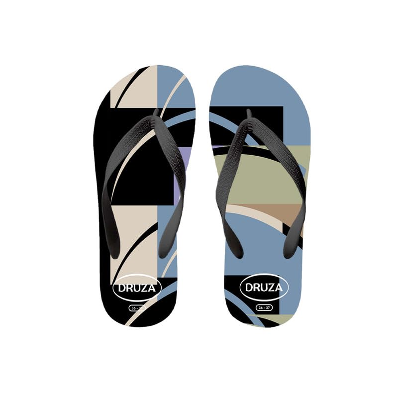 DRUZA - DRUZA-Rectangles Unisex Natural Rubber Slippers Ultra Comfortable Lightweight Odorless Water Resistant Non-Slip Sole Slippers by DRUZA