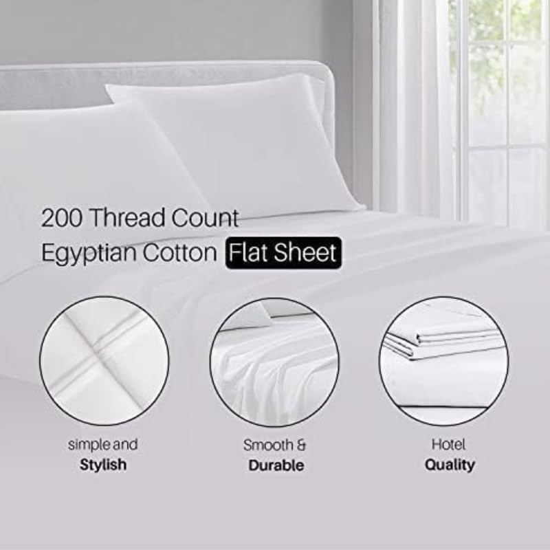 DTEX HOMES - DTEX HOMES 200 Thread Count Egyptian Cotton Flat Sheet - Single - White