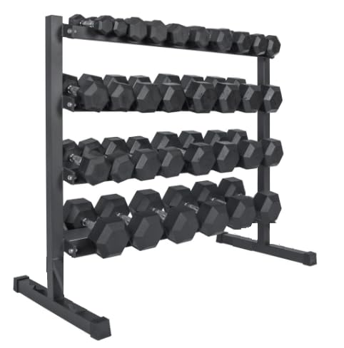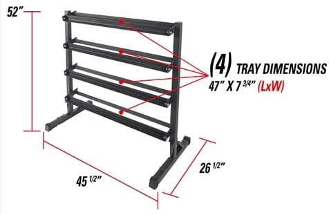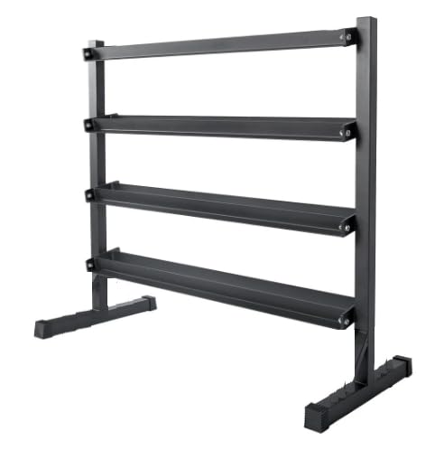 • MULTIPLE LAYERS: This shelf features four layers, and can accommodate a variety of dumbbell sizes and weights.
