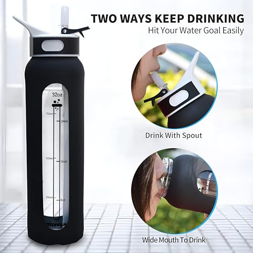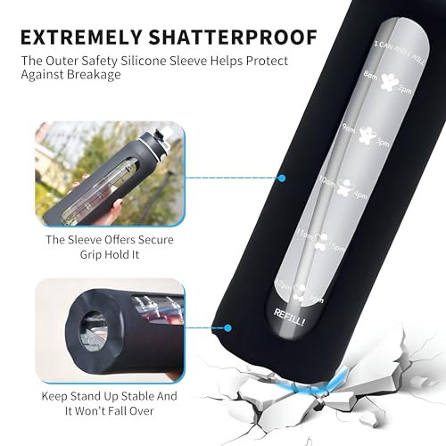 Generic - زجاجة ترطيب متينة، زجاجة أنيقة مزودة بغطاء من السيليكون وغطاء مقاوم للتسرب، بعلامات لسهولة القياس لمساعدتك على تلبية احتياجاتك من الترطيب