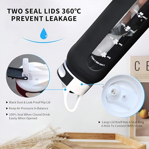 - تتميز زجاجة المياه متعددة الوظائف هذه بغطاء لولبي مع غطاء علوي قلاب، مما يوفر طريقتين لمنع التسرب والغبار. يُسهّل المقبض الموجود على جانب الغطاء حمل الزجاجة، سواء كنت متوجّهًا إلى الجيم أو في رحلة مشي. يضمن الغطاء المتين إحكام الإغلاق بشكل ممتاز، مما يتيح لك حمل مشروبك بثقة دون القلق من الانسكاب أو التسرب.