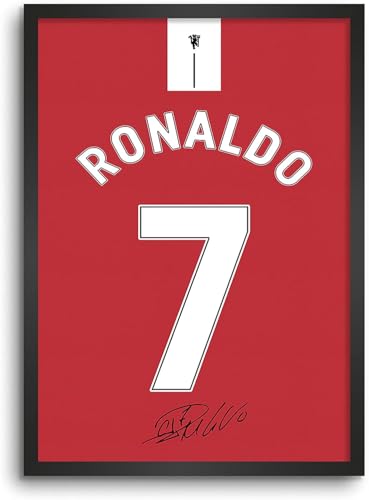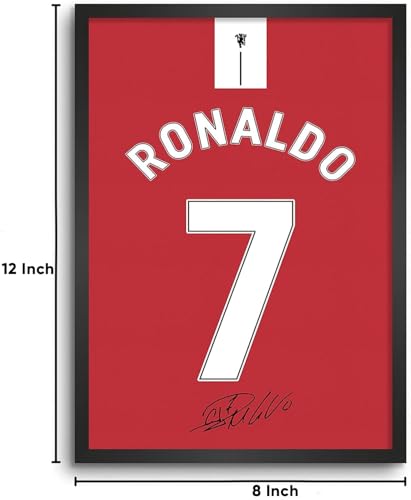- LAMRON Ronaldo Red Jersey Wall Decoration Art Framed Poster, 8 Inch x 12 Inch, Matt Laminated Poster with 0.5 Inch Black Wooden Frame