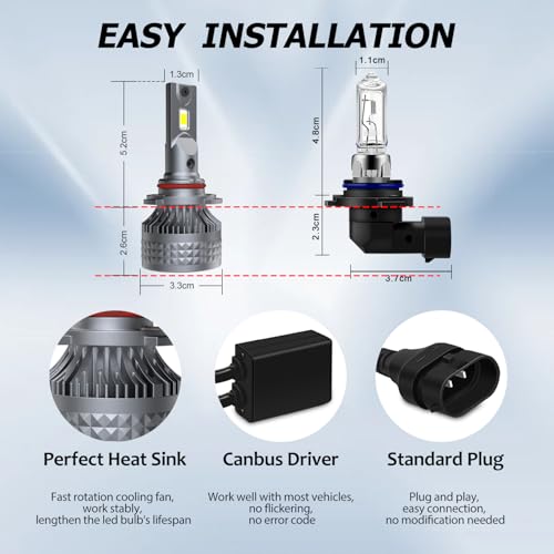 - Super Mini Design: All-in-one, almost 1:1 same size as stock halogen bulb. Standard socket, no any extra wires, plug and play, direct replacement with the stock halogen bulbs.
