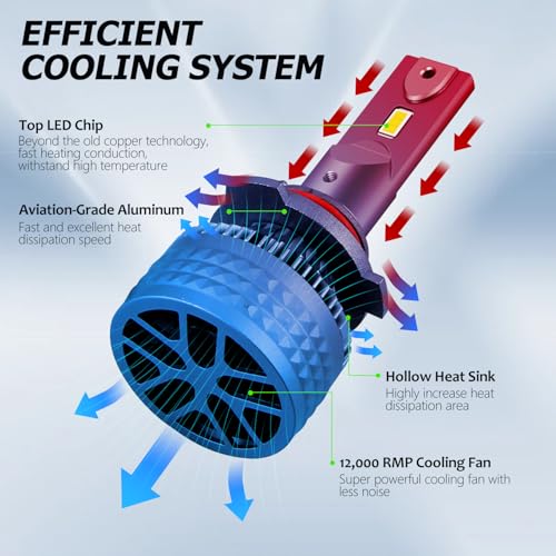 - 12,000 RMP Efficient Cooling System: Aviation-grade aluminum structure automatically takes away the heat, cooler than other LED bulbs, hollow heat sink increases the dissipation area, ceramic substrates and pure copper material improves the luminous efficiency and works more stably.