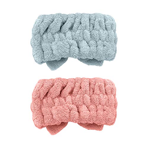Generic - EANDT SOFT HEADBAND 2PC SET HAIR ACCESSORY BEAUTY SPA SELFCARE WOMEN GIRLS (Blue and Pink)