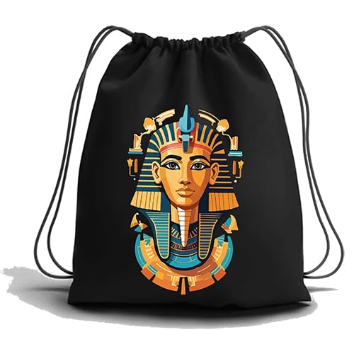 Generic - Egyptian Pharaoh Design Drawstring Backpack, Black Canvas Tote Bag
