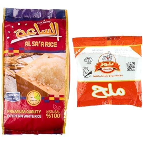 AL SA`A - El Sa'a Egyptian White Rice - 1 Kg + Free Nour Refined Milled Table Salt - 200 grams