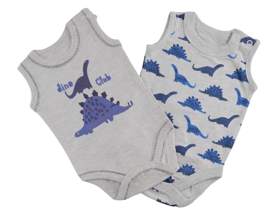 Elsayaad - El Sayaad Cotton Round Neck Sleeveless Bodysuit - Grey And Blue,Pack Of 2, 0-3 Months