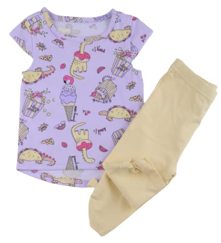 Elsayaad - تيشرت باكمام قصيرة ورقبة دائرية للبنات بطبعة ايس كريم من الصياد مع بنطلون لجينجز - ارجواني، 3-6 شهر