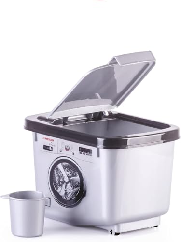 Generic - صندوق تخزين مسحوق الغسيل من الوطنية موديل أوتوماتيك باج بتحميل علوي، باللونين الفضي والأسود مع خاصية القفل للحفاظ على جفاف المسحوق