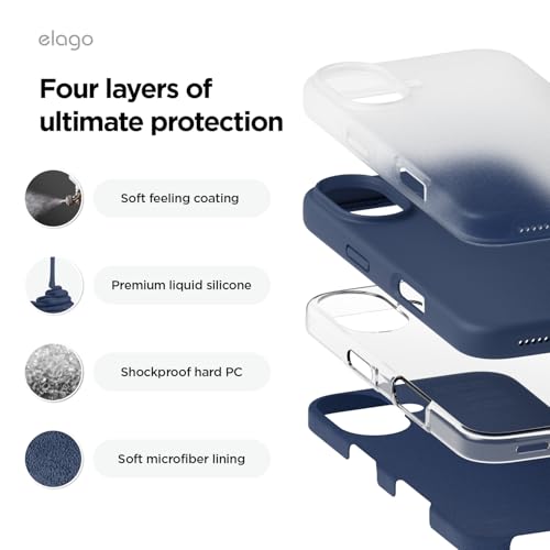 elago - جراب من السيليكون السائل متوافق مع موبايل آيفون 16 بلس 6.7 بوصة، غطاء واقي لكامل هيكل الموبايل، حافظة حماية رفيعة مضادة للصدمات مع بطانة ناعمة من المايكروفايبر مضادة للخدش من ايلاجو (جين انديجو)
