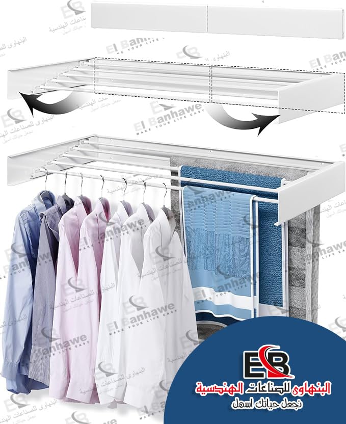 ElBanhawe - منشر غسيل من البنهاوى - أسود - 1 متر، سبيكة صلب، ستانلس ستيل