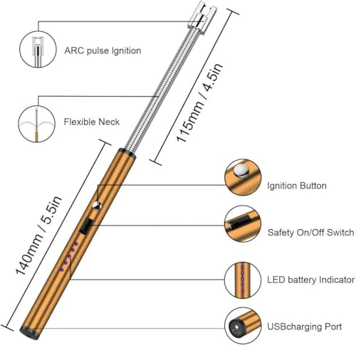Generic - ادولت كهربائية للمطبخ (ولاعة كهربائية مقوسة، ولاعة بلازما بدون لهب USB مضاد للرياح لموقد غاز الشواء والالعاب النارية (ذهبي))