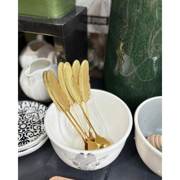 - ✅【Artistic Feather Design】Each spoon features a beautifully engraved feather pattern that brings sophistication and charm to your table, transforming ordinary servings of coffee, tea, or desserts into a visually appealing experience that impresses guests and adds a touch of elegance to any setting. 🪶