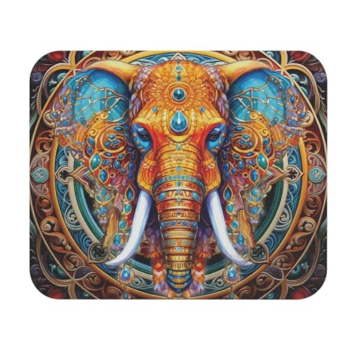 Generic - قاعدة ماوس بتصميم فيل ماندالا للاب توب والكمبيوتر، مطاط، متعدد الألوان