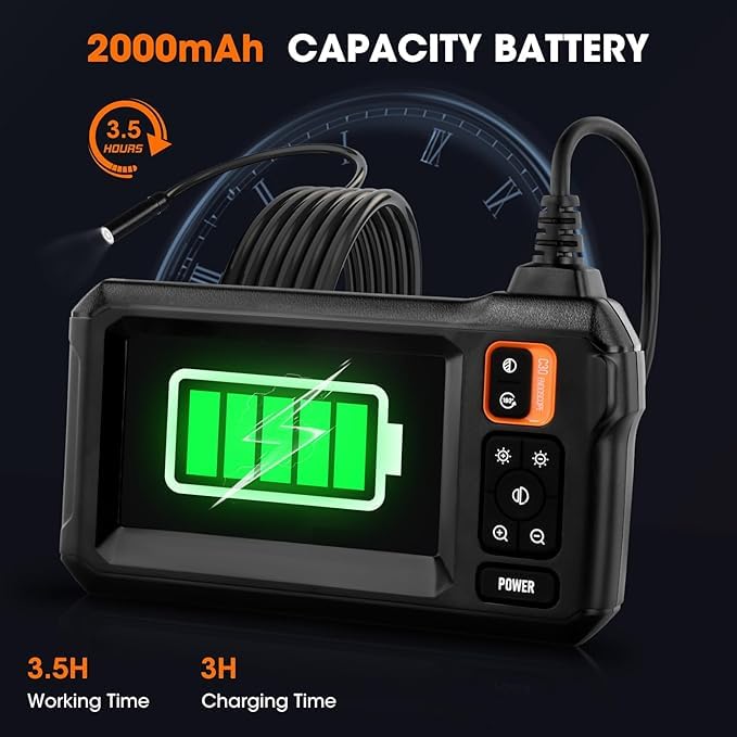 - ✅【Easy to Use Endoscope】This versatile tool is ideal for car maintenance, home inspections, electrical installation, HVAC repairs, and DIY projects. The 8mm endoscope camera can easily pass through the spark plug hole to inspect the combustion chamber of the engine. Simple to operate, just switch on and go. No requirement to download software onto a smartphone or connect to WIFI. The snake camera's built-in battery can run continuously for approximately 3 hours and can be used with the included USB cable for simultaneous charging and operation.
