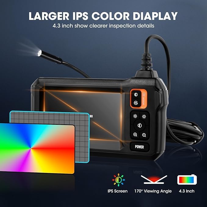 - ✅【4.3" IPS Screen & 1080P HD Camera】The endoscope camera is furnished with a 4.3-inch color LCD screen, enabling real-time viewing of high-definition images. It can be used immediately after startup without the need to connect to WIFI or download any driver software, offering convenient operation. Please note that endoscopes cannot capture photos or record videos.