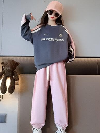 Generic - Everyday Comfort Set - Women's Two Piece Sweatsuit Featuring Soft Grey Top and Bright Pink Joggers for Casual and Lounge Wear