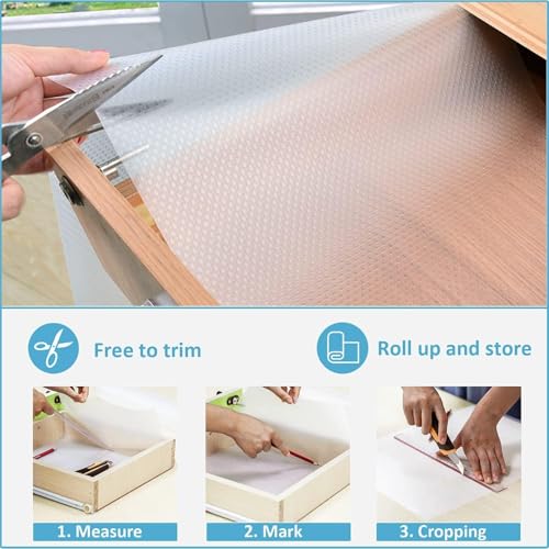 - ✪ The unique non-slip design features a diamond pattern that not only adds a touch of elegance but also enhances functionality. The insert can be easily cut to fit any size or shape, allowing for a custom fit to your closet or shelves. This flexibility ensures you achieve the perfect look and protection of your space.