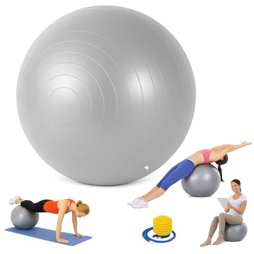 Generic - Exercise Ball Yoga Ball Gym Ball Balance Ball – Pilates Swiss Stability Anti-Burst Pregnancy Birthing with Pump for Home Workout & Office Chair (Grey)