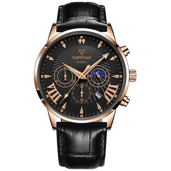 Fairwhale - Leather WATCH for Men,Black - FW-5020-6