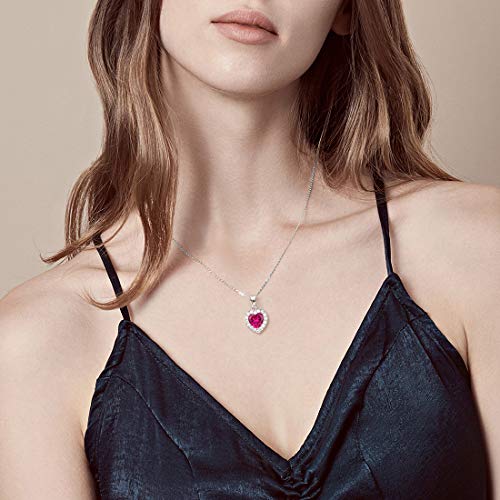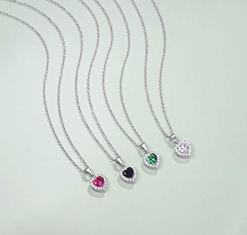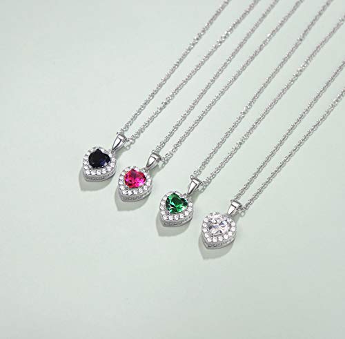 FANCIME - FANCIME Birthstone Necklaces for Women 925 Sterling Silver Heart Necklace Emerald Ruby Opal Sapphire Pendant Danity Fine Jewelry for Women Girls, Metal, Created Ruby,
