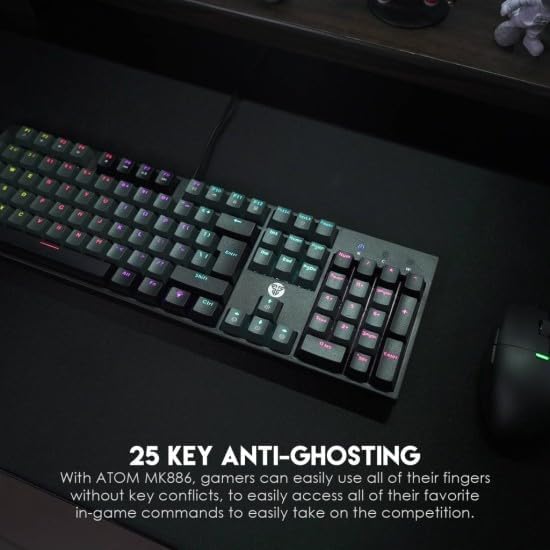 Fantech - لوحة مفاتيح ميكانيكية للألعاب MK886 بإضاءة ار جي بي من فانتيك رمادي حمراء