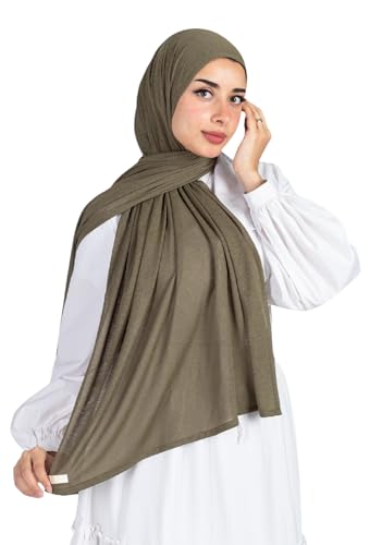 Farah - سكارف قطن كويتي بنقشة رخامية للنساء من فرح - لون زيتي - 1.8 م × 70 سم