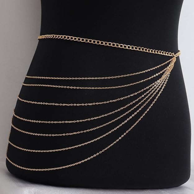 Spaceshoop - Fashion Layered Waist Chain Gold Metallic MultiLayered Body Chain Simple Suit Skirt Accessories For Women And Girls