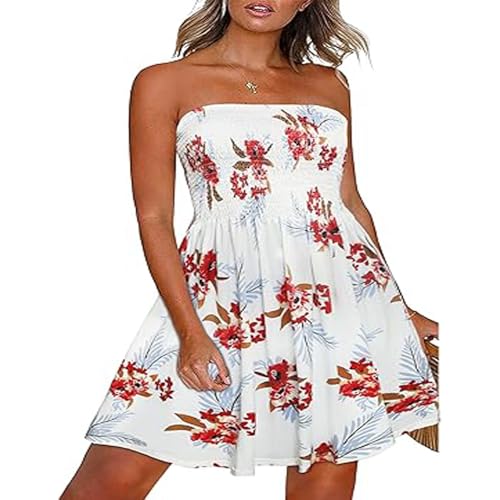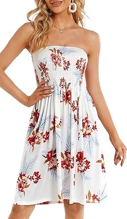 fashion mania - فساتين صيفية بدون حمالات بطبعة زهور بتصميم بوهيمي للنساء مناسب للشاطئ من فاشون مانيا