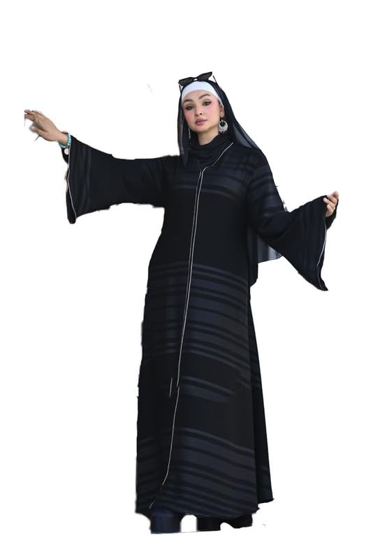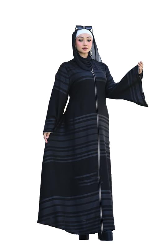 GAMAL SONS FOR ABAYA - Fashion Stripes Pattern Black Zip Front Abaya for Women - Elegant Wide Sleeve - GAMAL SONS FOR ABAYA GS-205-33918-Parent