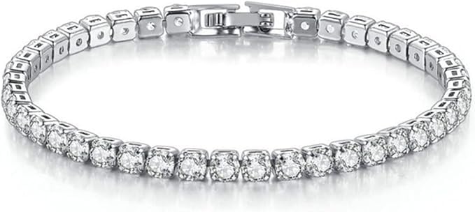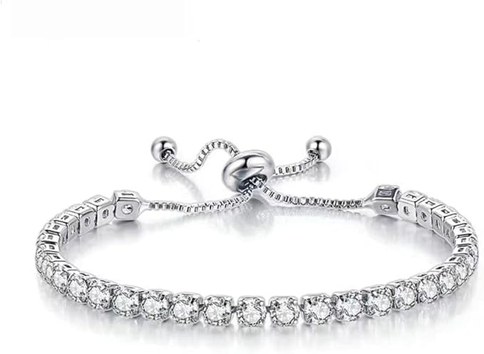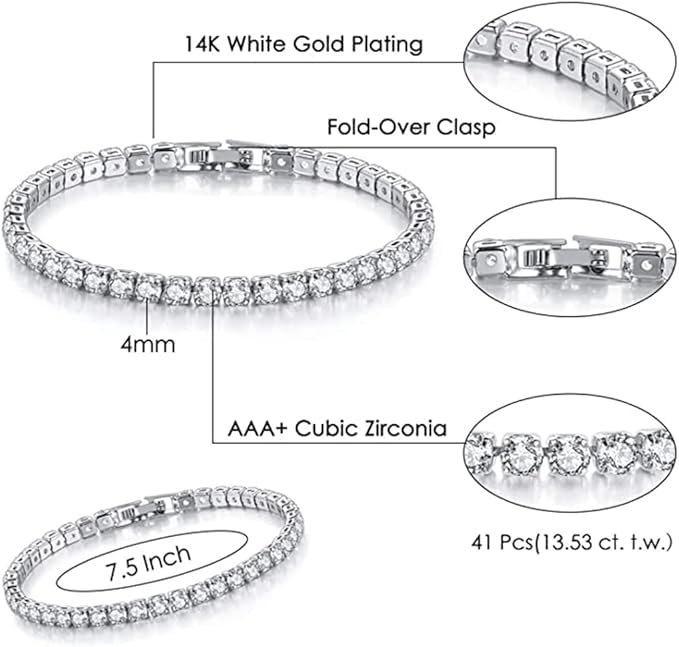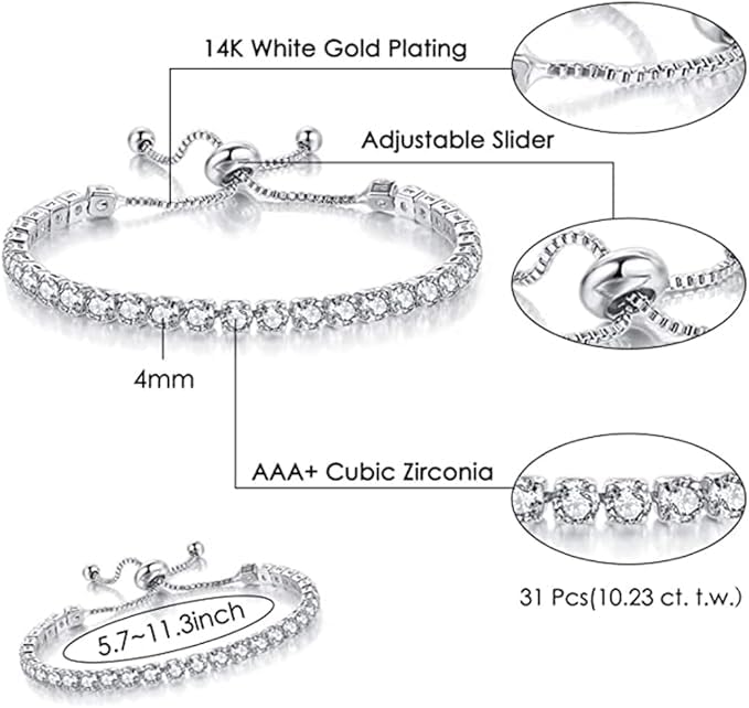 Fayrouz Jewellery - Fayrouz Jewellery Women's Tennis Bracelet 14K White Gold Plated Cubic Zirconia 4mm Classic Diamond Adjustable Fashion 16.51 19.05 cm (2 Pieces), One Size, Cubic Crystal