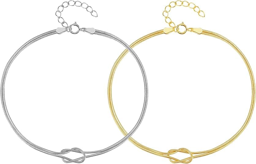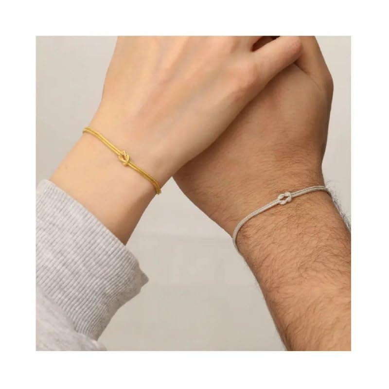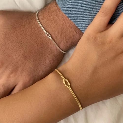 Fayrouz Jewellery - Fayruz Jewelry Matching Bracelets for Couples Dainty Gold Silver Love Knot Bracelet Stainless Steel 18K Gold Plated Herringbone Chain Relationship Jewelry Gifts Love