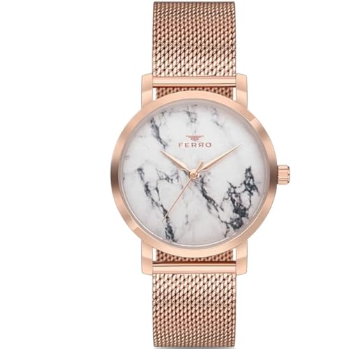 Ferro - Ferro F2792C-C Stainless Steel Watch, 32 mm Size, Rose Gold/White