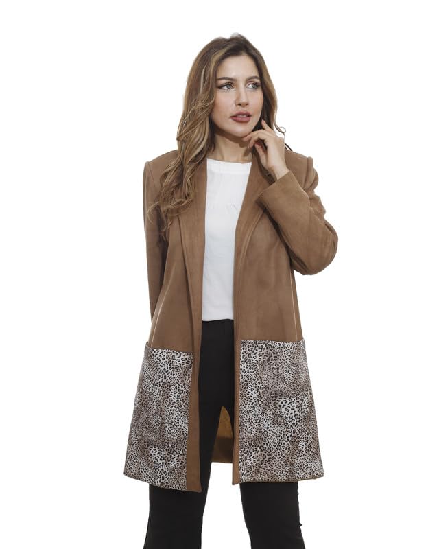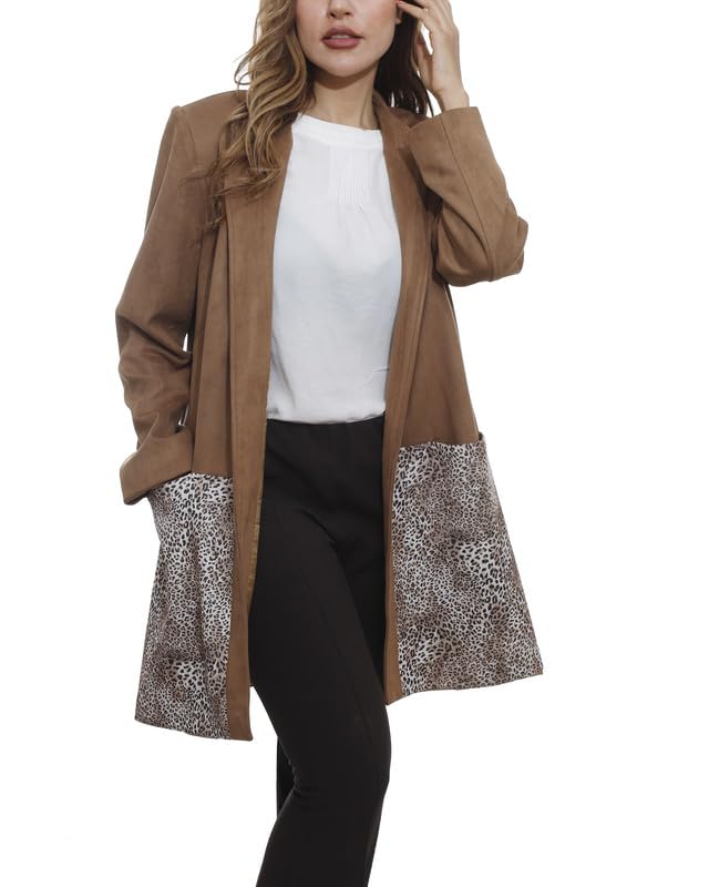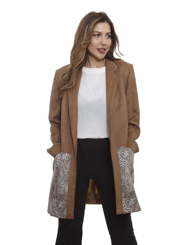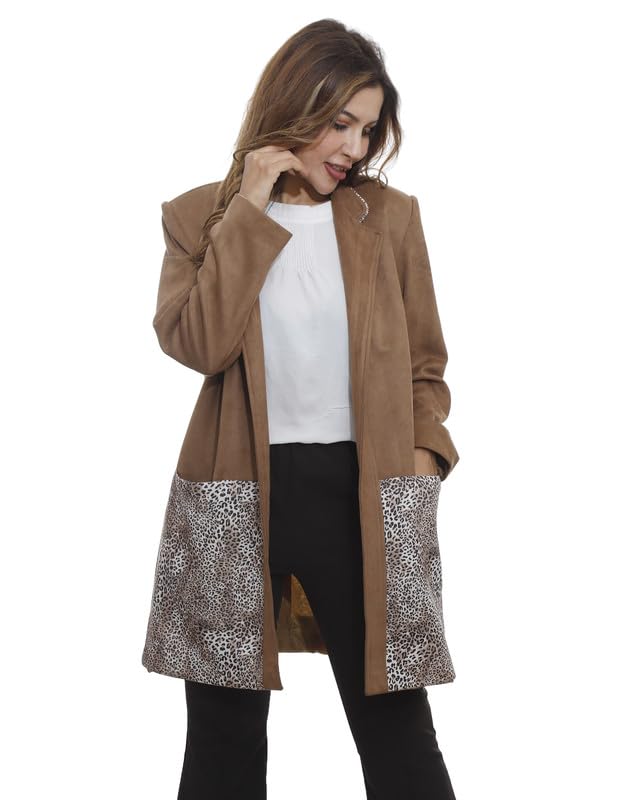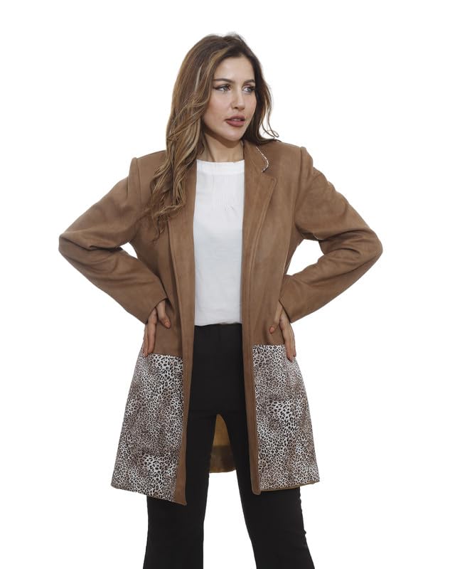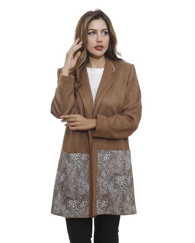 first mode - جاكيت شمواه للنساء من فيرست مود، مقاس 48 - لون كافيه
