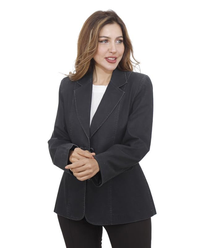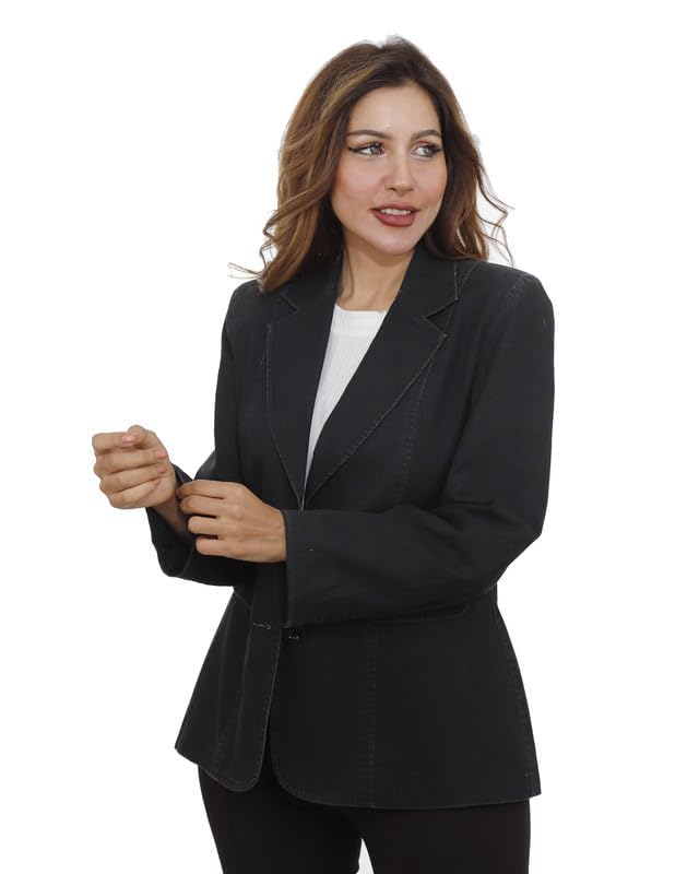 first mode - جاكيت جينز ريفر سادة للنساء من فيرست مود، مقاس 46 - اسود 102
