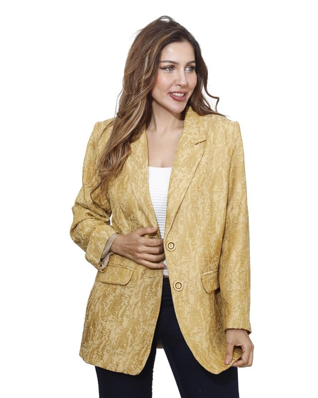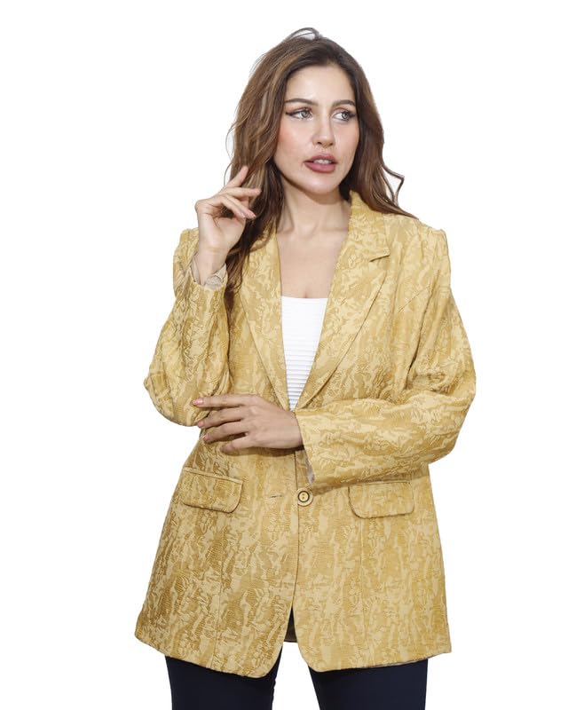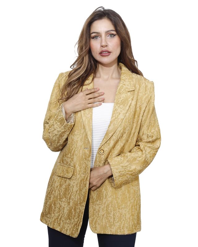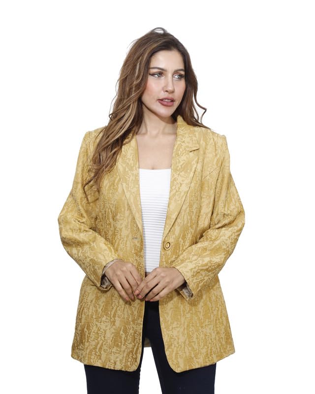 first mode - first mode Women's Solid Satin River Jacket Size 46 - Yellow