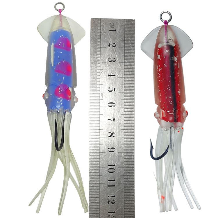 Generic - طعم حبار أو كالاماري سيليكون مع خطاف وثقالة بالداخل لصيد الأسماك، قطعتان 155